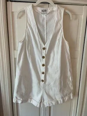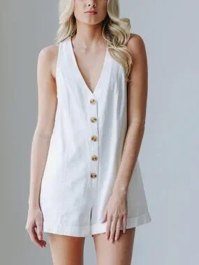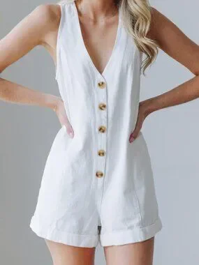 Playful, yet polished, this denim romper is a wardrobe staple. Easy to throw on with its button front, relaxed trapeze style fit, cuffed shorts, and functional side and back pockets, the San Diego Romper by Show Me Your Mumu is perfect for all of your favorite activities, from country concerts to running errands. Color: White/Seasalt