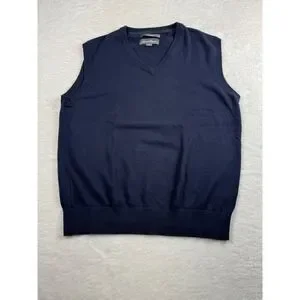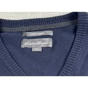 Eddie Bauer Cotton Cashmere Sweater Vest Layering Academia Preppy Men Blue Large