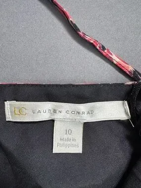 LC Lauren Conrad Black Dress with Pink Floral Straps Size 10