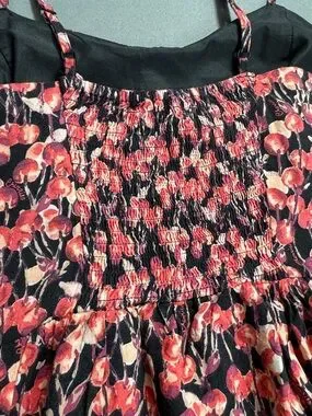 LC Lauren Conrad sleeveless dress with delicate floral straps. Black main body with pink and coral floral detailing.