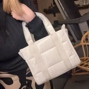 Chic kate spade tote with quilted puffer design. Sturdy top handles with branded straps. Zippered top closure for security. Minimal, versatile style for everyday use.