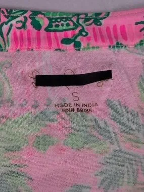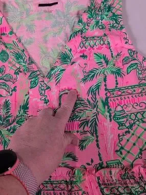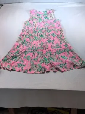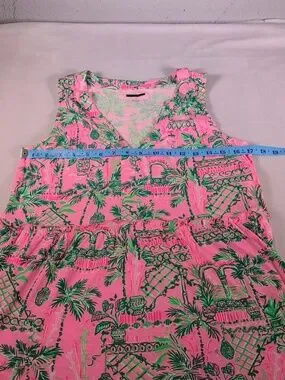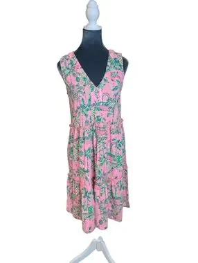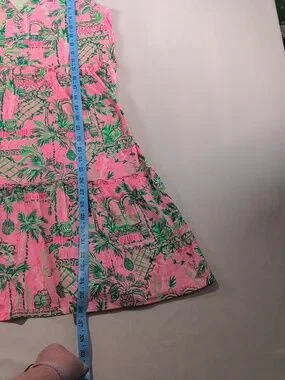 Lilly Pulitzer Lorina Swing Dress Mandevilla Baby Always Worth It Size S NWOT. Sleeveless. Ruffled Tiers. *READ. I purchased this as an overstock/return. Label has been blacked out with a black adhesive strip and care tag cut. There are a couple of small dots/marks on the dress. I am pointing to them in the last 2 pics. One is close up and the other is where on the dress it is. It could be pallet dust or something like that. It's also possible that there are more places which I did not see - such the problem of busy patterns. Priced accordingly.