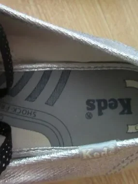 Women's KEDS Cushioned Heel Shock-Proof Arch Lace Up Metallic Silver Size 9