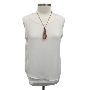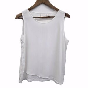 Chico's Womens S White Sleeveless Blouse Layered Hem Tank Top Office Workwear