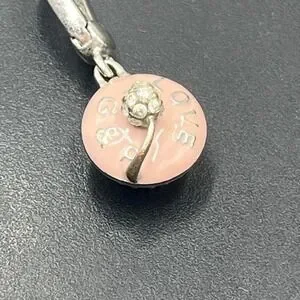 This is a retired Juicy Couture cupcake charm featuring pink enamel, rhinestone details, and the word "LOVE".