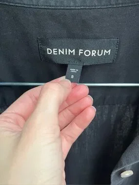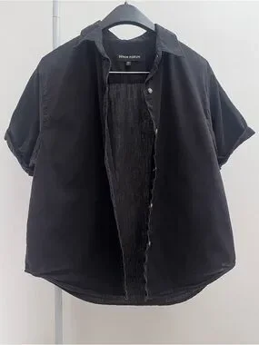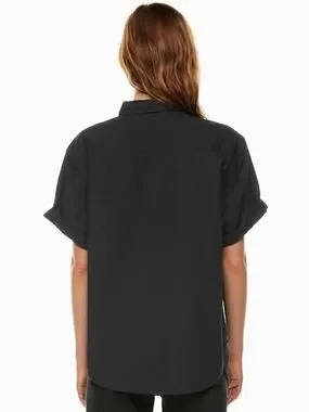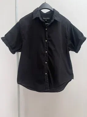 Aritzia Denim Forum the Jane shirt S black short sleeve button up timeless