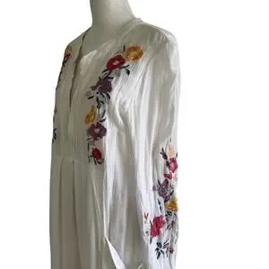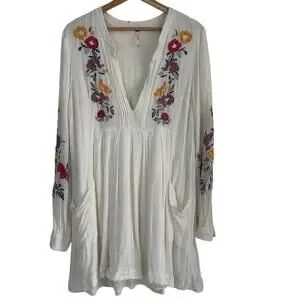 Free People Mia Gauze Embroidered Mini Dress White Boho Tunic L Boho Festival