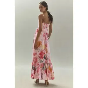 The BHLDN Aubree Sleeveless Linen Floral Fit & Flare Maxi Dress exudes timeless elegance with its sleeveless design linen fabric, and charming floral pattern, making it an ideal choice for any special occasion.