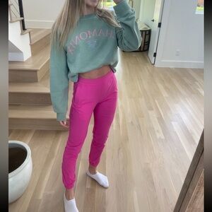 Vibrant pink high-rise jogger. Perfect for casual wear. Love these only were a couple times just too small now unfortunately.