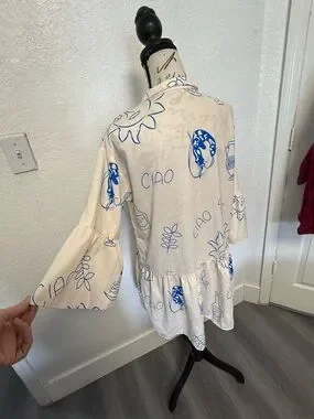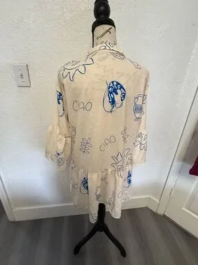 Commense "Ciao" Graphic Print Mini Dress - XS - Bell Sleeve & Tiered Hem