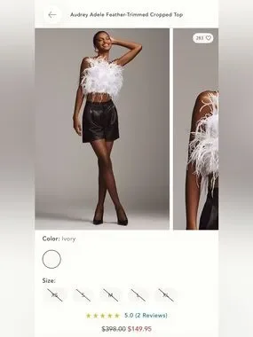Statement feathered crop top in bright white. Soft, textured feather detailing. Strapless silhouette. Perfect for events and parties.