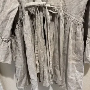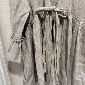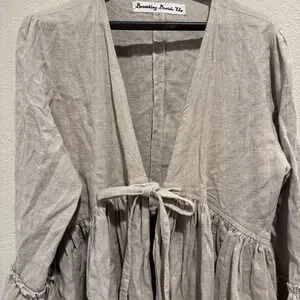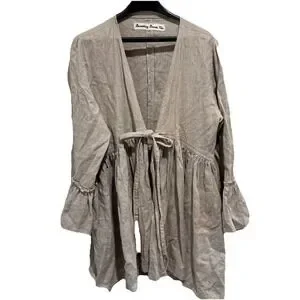 Linen Tie Front Shrug Wrap Cardigan Shepherds Frock One Size Beige Cover Up