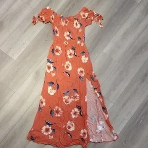 Band of gypsies off the shoulder floral maxi dress with slit. Beautiful floral pattern, soft and flowy. Wear on or off the shoulder. sorry for the wrinkles, my steamer decided to not work for me today.