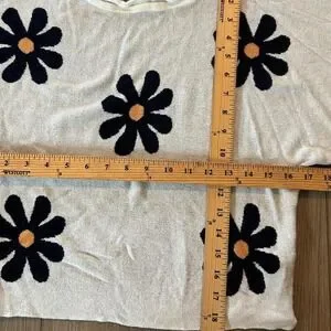 Cream and black retro daisy floral sweater with a vintage vibe small