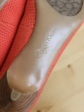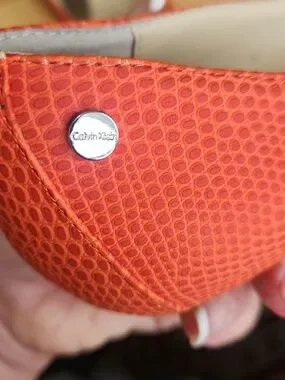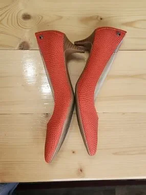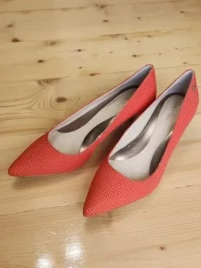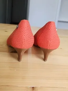 Calvin Klein Nicki orange kitten heels pointy toes.