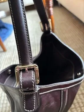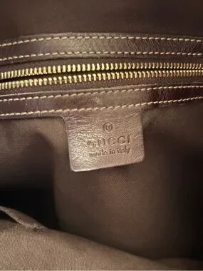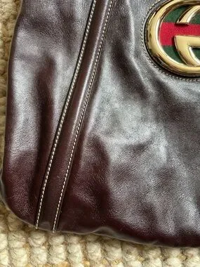 Gucci Brown Leather Medium Britt Shoulder Hobo Bag with Red & Green Web