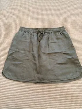 Casual mini skirt with elastic drawstring waist. Soft, lightweight fabric for easy movement. Subtle A-line shape with rounded hem. Simple pockets blend into the side seams. Effortless neutral piece for everyday outfits.