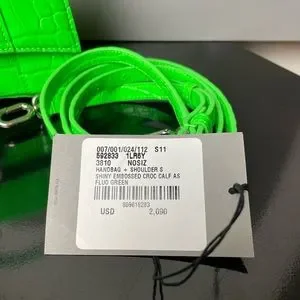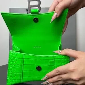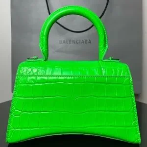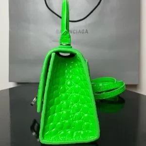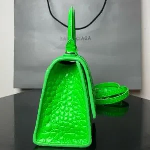 Balenciaga Neon Green Hourglass XS Croc-Embossed Top Handle Bag