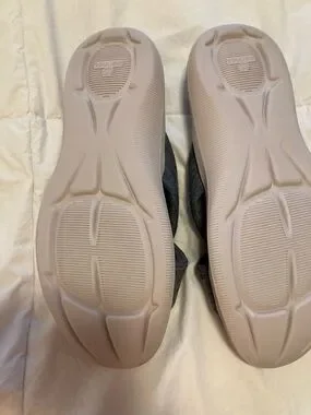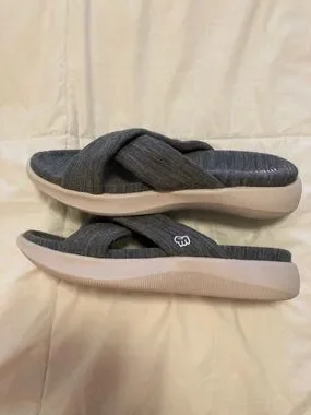 Merinos Women's Gray Cross-Band Cozy Slide Mules