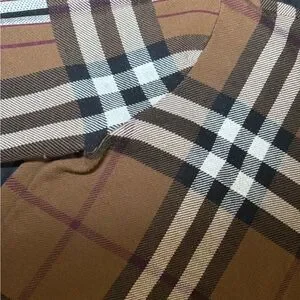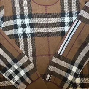 Burberry Camel Plaid Crewneck Sweater with Black & White Accents