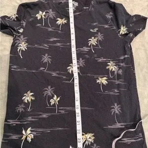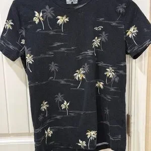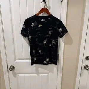 Hollister Must-Have Palm Tree Print T-Shirt XS Black Tropical 100% Cotton