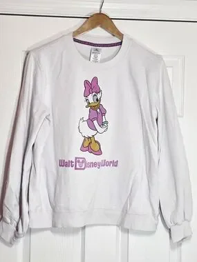 Walt Disney World Daisy Duck White/Pink Sweatshirt Sz XL Cotton Polyester