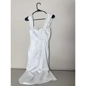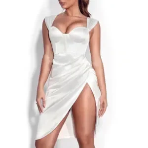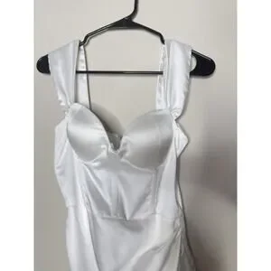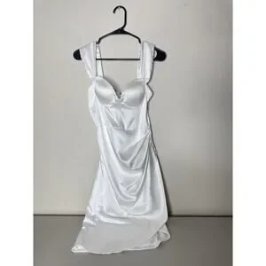 Miss Circle $185 Hedy Sz S White Satin Corset Mini Dress Ruch Mini Slit Silky