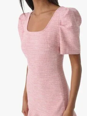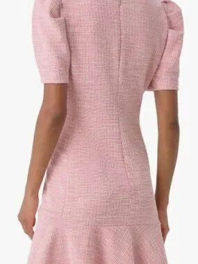 Karl Lagerfield Paris Tweed Puff-Sleeve Flounce Hem Dress Sz 10 Barbiecore