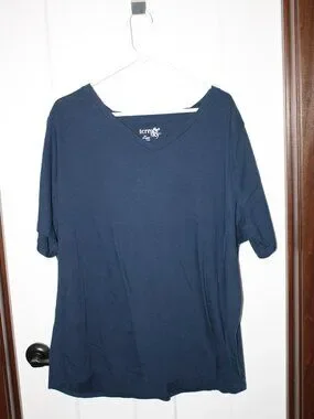V-neck short sleeved Tee shirt in Navy blue. Size 3X. Leggings Navy with small print floral. Size 3X
