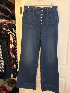 J. Crew High-Rise Wide-Leg Button-Fly Jeans in Blue Wash