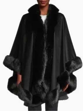 Turn heads in this luxurious Sofia Cashmere cape, crafted from 100% pure cashmere and finished with rich genuine fox fur trim