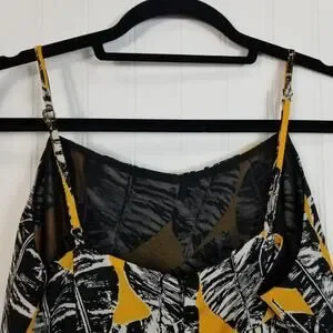Olive + Oak Mustard Yellow Black Leaf Print Cutout Romper Large