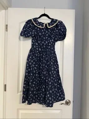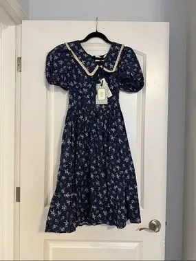 JessaKae Rory Dress - Size XS. New with tags! Cotton midi dress with Peter Pan collar and bow. Beautiful floral print. Zipper back. Puff sleeves. Hits just at knee length.