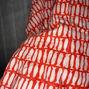Keywords: Artisanal, Block Print, Coastal, Bohemian, Sustainable Fashion, Handmade, Geometric, Summer, Breathable, Minimalist, Indie, Resortwear, Ethical Fashion, Red and White, Boxy Fit