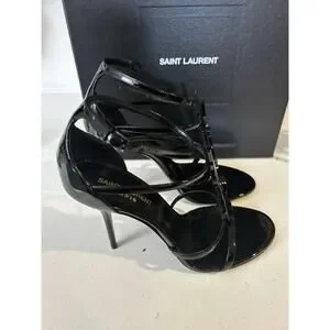 NWT Saint Laurent Cassandra 100 YSL Patent Leather Sandals Size 39.5/US 9.;5