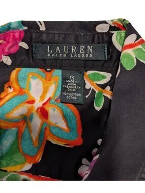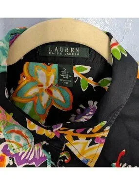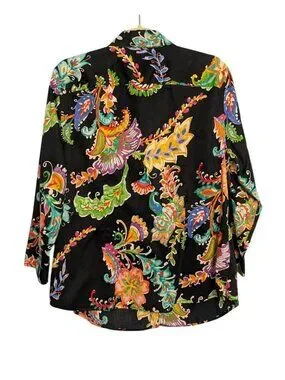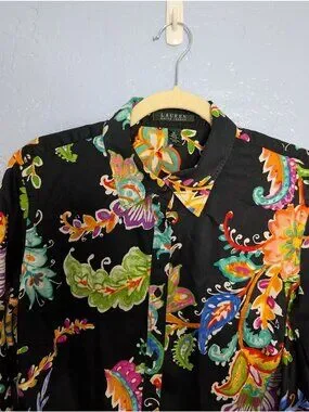 Lauren Ralph Lauren Womens Colorful Paisley Floral Button-Down Blouse 1X Black