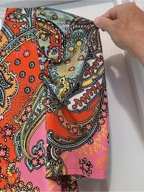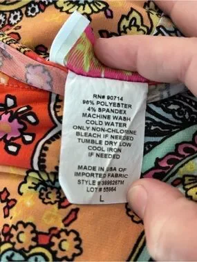 The Ivy Lane Size Large Paisley Knee Length Dress is a stylish and comfortable choice for a variety of occasions, including travel, parties, and casual wear. Made from a blend of polyester and spandex, this dress features a bohemian theme with a bottom ruffle and a puff sleeve design. With a knee-length midi style and a vibrant multicolor paisley pattern, this lightweight and stretchy dress is perfect for warm weather and can be easily cared for with machine washing. Perfect for the summer, fall, and spring seasons, this dress is a versatile addition to any woman's wardrobe, representing the brand's quality craftsmanship.