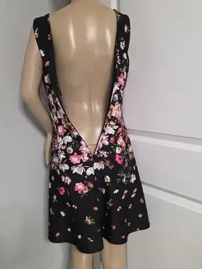 Jessica Simpson black floral cocktail dress.