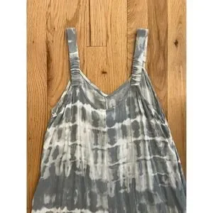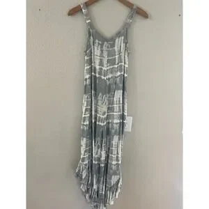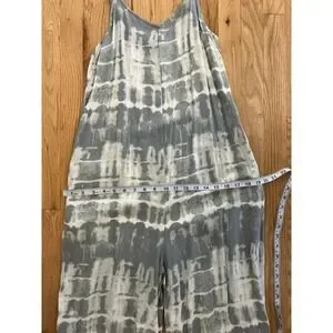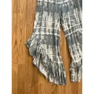 Japna Womens Grey White Tie Dye Ruffle Hem Wide Leg Jumpsuit Size M Boho Rayon