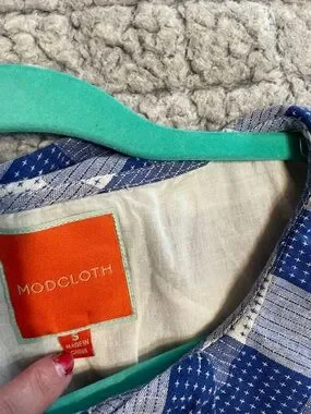 Modcloth Blue and White Gingham Sleeveless Fit-and-Flare Mini Dress