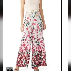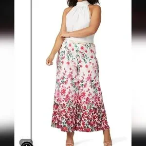 Marchesa Notte Designer Gradiant Floral Palazzo Pants Flowy Silky Huge Leg 20W