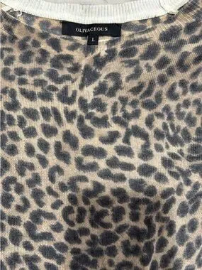 Olivaceous Taupe and Black Leopard Knot-Front Long Sleeve Top