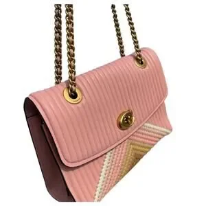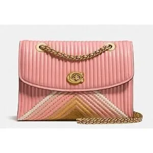 COACH 26848 Parker with colorblock quilting and rivets Peony NWT