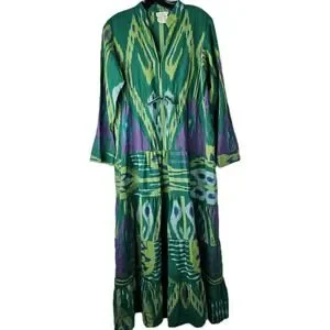 Guadalupe Anthropologie Green Maxi Dress Small Southwestern Boho LS Resortwear