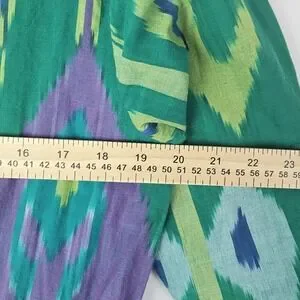 The Guadalupe Women's Green Purple Maxi Dress in size Small is a stunning piece of Southwestern boho resortwear. Made from cotton, this dress features a beautiful floral pattern in shades of green and purple. It has a pullover closure, a tie waist accent, and falls to a long length, making it perfect for casual occasions during the summer, fall, and spring seasons. The dress is machine washable for easy care and was originally made in India under the brand Guadalupe, offering a unique and stylish addition to any woman's wardrobe.