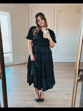 JessaKae Liz Dress Black Tiered Midi Dress with Ruffle Trim