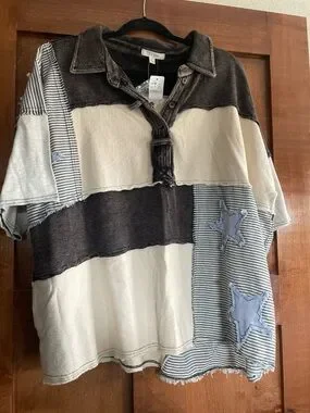 Oli & Hali patchwork button up top with pockets!