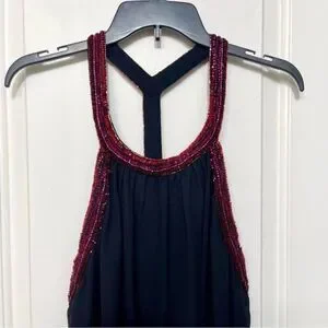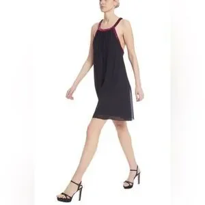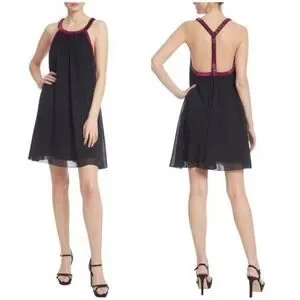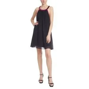 New Jewel Badgley Mischka Trapeze Dress with Beaded Trim in Black Size 8