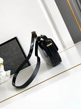 Prada Classic Triangle Shoulder Bag Black Calfskin Flip Cover