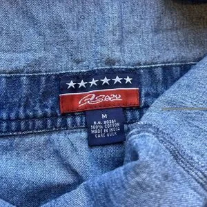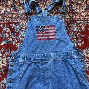 Agapo 90s Women Denim Overalls American Flag Blue Jean USA Embroidered M VTG